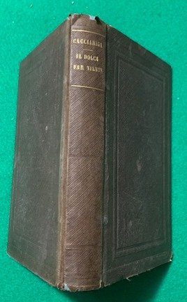 In 8°; (4), 329, (3) pp. Legatura coeva in tutta tela con cornice a doppio filetto ai piatti. Al dorso, titolo ed autore impressi in oro. Esemplare in buone-ottime condizioni di conservazione. Seconda edizione riveduta e corretta, assai rara quanto la prima, di questo scritto del noto uomo politico, patriota e scrittore veneto, Antonio Caccianiga (Treviso, 30 giugno 1823 Maserada sul Piave, 22 aprile 1909). In giovane età Caccianiga studiò storia naturale ed economia rurale ma poi, le sue idee politiche antiautriache e liberali lo portarono a dover girovagare per l'Italia e l'Europa per cercare di sottrarsi alla all'interesse della polizia austriaca. Fu così che visse in Piemonte, Svizzera, Francia ed Inghilterra con scarsi mezzi dato che il governo austriaco aveva sequestrato i beni paterni. Nel 1854 riuscì a tornare a Treviso dopo aver ricevuto l'amnistia, grazie ad un amico che lo ospitò nella sua villa a Masareda sul Piave. Vivacissimi furono i suoi collegamenti i patrioti e gli intelletuali italiani esuli. Politico dai numerosi contatti, durante la sua vita ricoprì diverse cariche prestigiose fra le quali quella di podestà e sindaco di Treviso, sindaco di Maserada, prefetto di Udine, Presidente del Consiglio della Provincia di Treviso, consigliere della Scuola di Enologia di Conegliano, Presidente dell'Ateneo di Treviso e Deputato del Regno d'Italia. Nel 1866 fu, anche, membro della delegazione che presentò a Re Vittorio Emanuele II i risultati del plebiscito per l'annessione del Veneto al Regno d'Italia. Caccianiga fu anche un prolifico giornalista e scrittore, autore di romanzi risorgimentali ed antiaustriaci come "I vampiri e l'incubo", "Il convento", "Brava gente", "Il roccolo di Sant'Alipio" e "Il proscritto". Tra le sue opere figurano anche elogi alla vita campestre, come "La vita campestre", "Il dolce far niente", "Le cronache del villaggio", "Il bacio della contessa Savina", "Frondeggi", e "Lettere dun marito alla moglie morta". Nota è anche la sua opera dedicata a Trevido, "Ricordo della provincia di Treviso". La sua opera fu molto apprezzata tanto che di lui paralrono in toni assai positivi Bendetto Croce e Enzo Demattè. Molte delle sue opere sono assai rare come ad esempio, quella qui presentata.