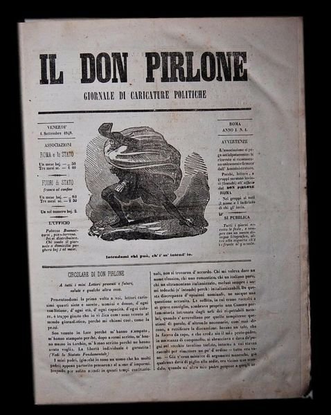 Il Don Pirlone Giornale di Caricature Politiche Venerdì 1 Settembre 1848 2 luglio 1849. 234 numeri. Completo, tutto il pubblicato.