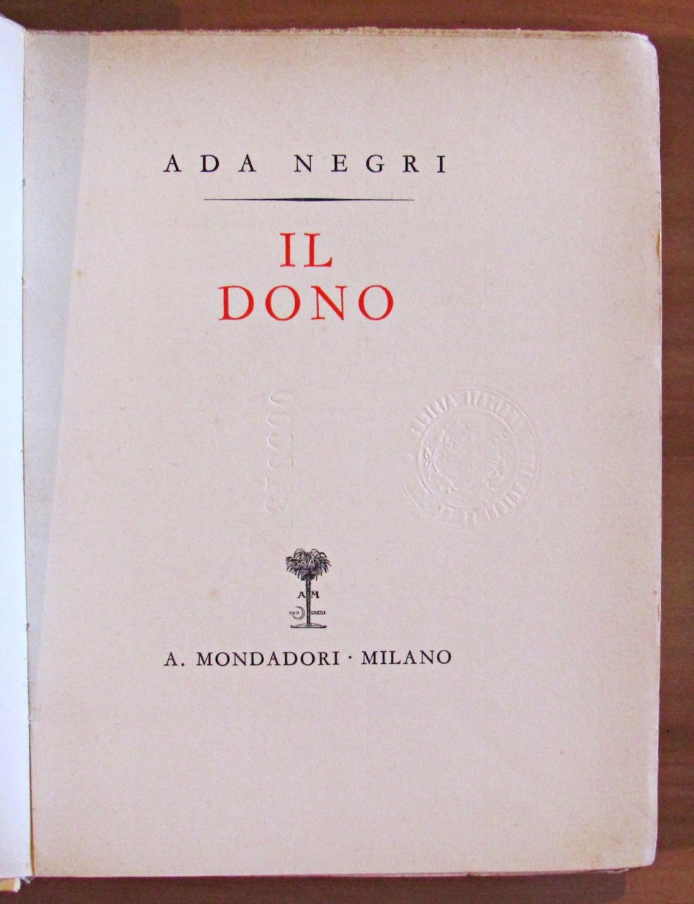 Mondadori - Milano, I edizione 1936. Brossura editoriale con doppia sovraccoperta. Alcune mancanze alla copertura acetata e al margine esterno della sovraccoperta. Peraltro interno in ottimo stato. 16x20,5; pp.147. BUONISSIMO STATO , Molto buono (Very Good)