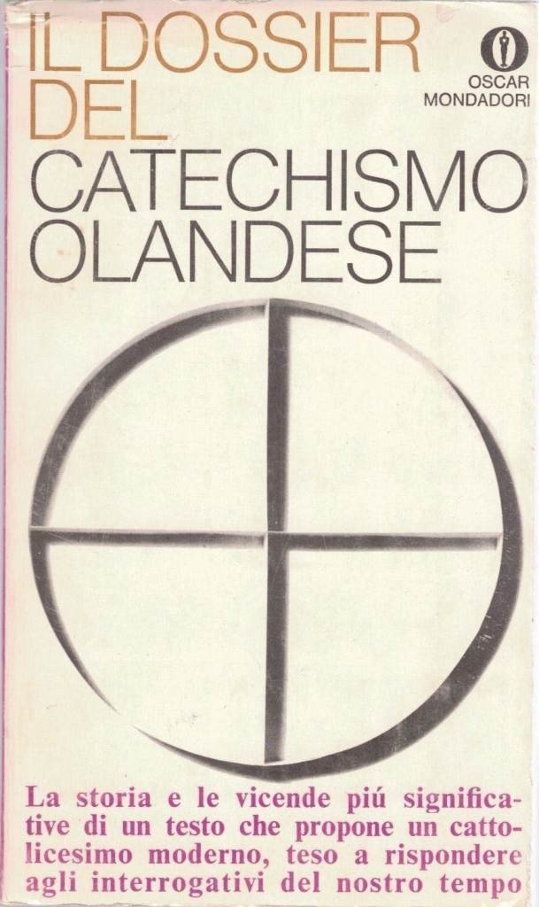 Il dossier del Catechismo olandese, testi raccolti da Aldo Chiaruttini, introduzione, note storiche e teologiche di Leo Alting von Geusau Segretario Genarale dell’Idoc e di Fernando Vittorino Joannes, Arnoldo Mondadori Editore, s.l. (ma stampato a Verona, presso le Officine Grafiche della Arnoldo Mondadori Editore) 1968, prima ed., pp. 318, cm 19, br. ed. Collana Gli Oscar, vol. 162. Sottotitolo alla prima di copertina: La storia e le vicende più significative di un testo che propone un cattolicesimo moderno, teso a rispondere agli interrogativi del nostro tempo. Traduzioni dal latino di Camillo de Piaz. Lievi tracce d’uso alla brossura, leggera brunitura della carta, per il resto ben conservato.