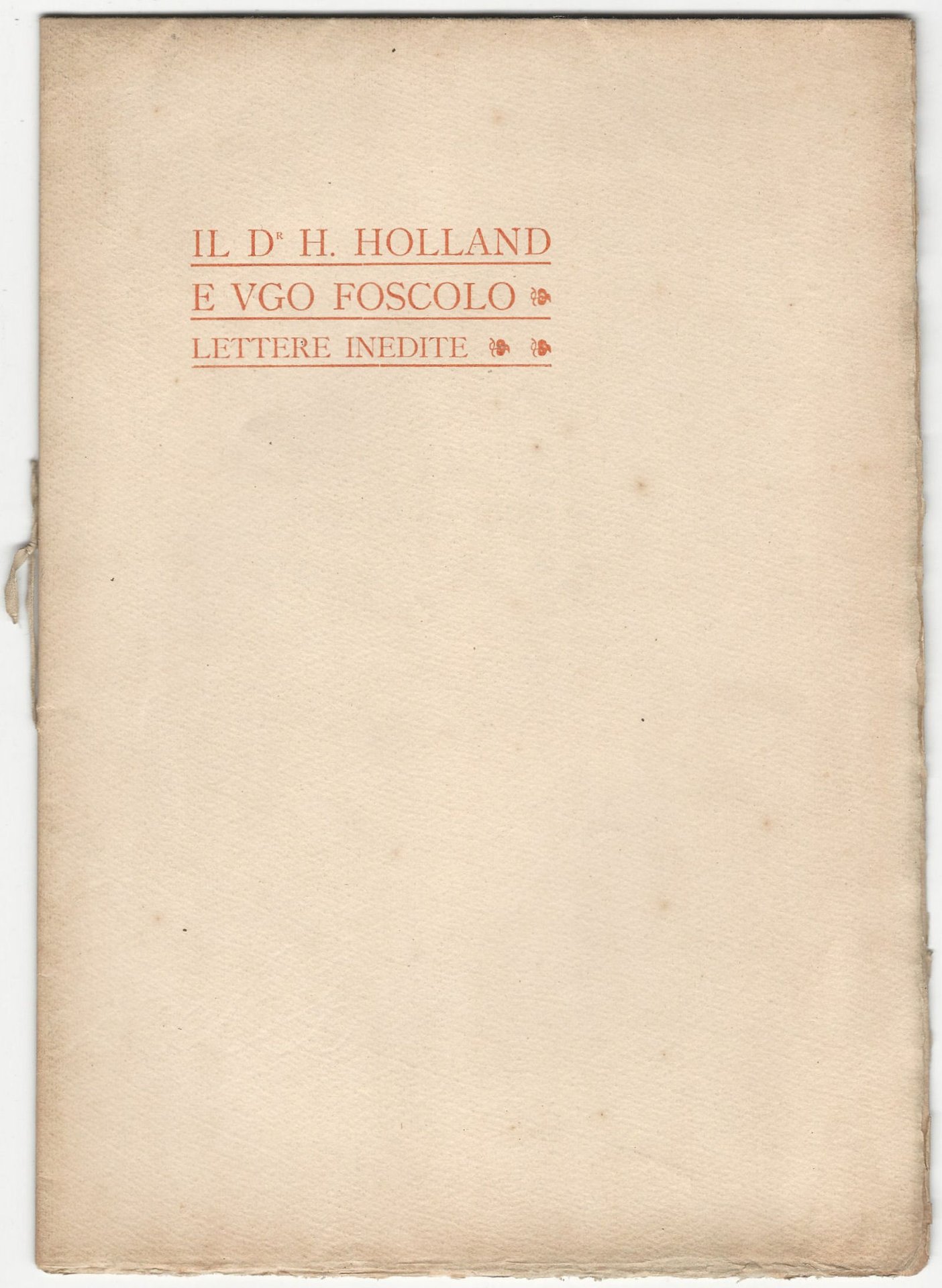Il dr. H. Holland e Ugo Foscolo, lettere inedite.