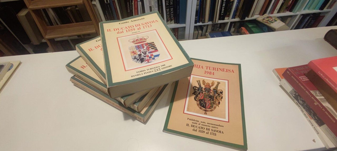 Guido Amoretti - Il Ducato di Savoia dal 1559 al 1713 (5 volumi) Famija Turineisa, Daniela Piazza Editore, 1988 Quattro tomi più un blocco note/raccolta di pubblicità allegato al numero del 1984 di Famija Turineisa. Libro in ottime condizioni, minimi segni del tempo. Non esitate a contattarci per altre foto o richieste. Saremo lieti di soddisfare ogni vostra esigenza.