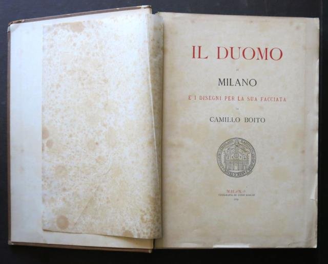 Tipografia di Luigi Marchi, Milano, 29 maggio 1889. Con 87 eliotipie, 11 litografie ed un saggio bibliografico di F. Salveraglio. In 4to (cm 22x 31), 318 (con Indici) + 85 tavole numerate fuori testo + XXXVI (Bibliografia) + (1) (Divisione del Volume, ossia un sintetico Indice), leg. orig. in cartonato con titoli in rosso / nero. Volume con difetti d'uso e del tempo agli angoli di copertina, scollato al dorso e quindi con alcuni (ma pochissimi) fogli sciolti, ottimo l'interno.