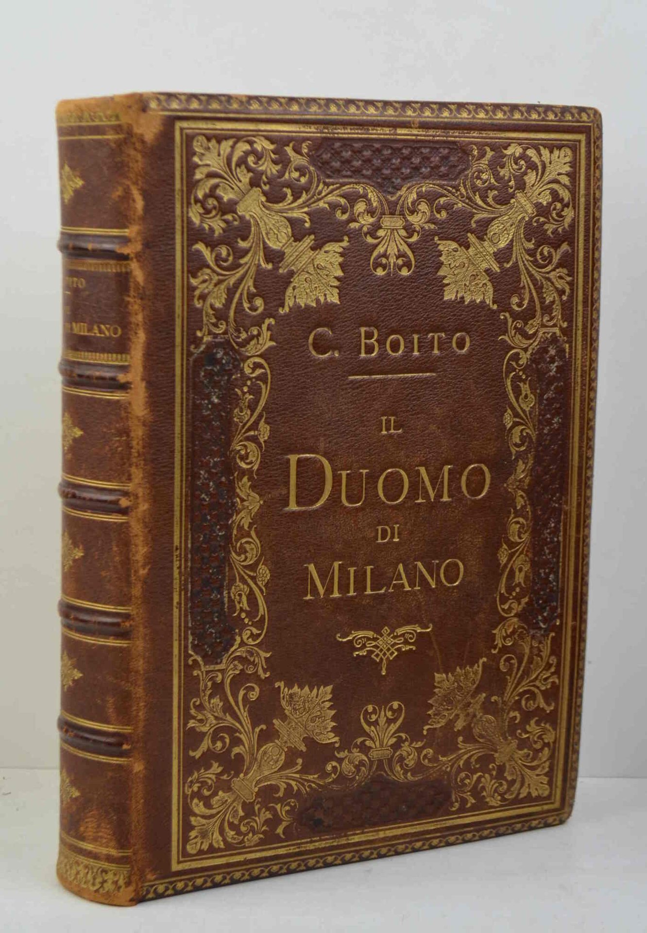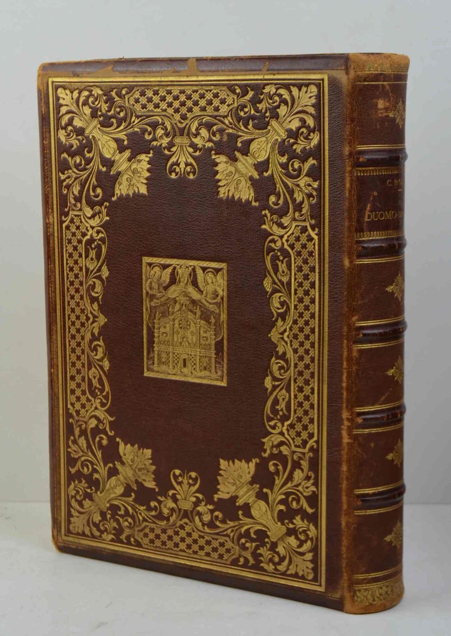 Cm. 31, pp. xii,318 (2) xxxvi (2). Con 87 tavole in eliotipia e 11 litografie fuori testo. Solntuosa legatura editoriale in piena pelle con titoli e decorazioni in oro. Tagli dorati e sguardie i seta. Una cerniera internamente indebolita, peraltro esemplare genuino ed in ottimo stato  di conservazione. Doppio ex libris. Cfr. cat. Hoepli (1017). Si tratta verosimilmente della tiratura di lusso di questa celebre opera le cui pagine finali contengono anche un'ottima bibliografia delle opere riguardanti il Duomo compilata da F. Salveraglio.