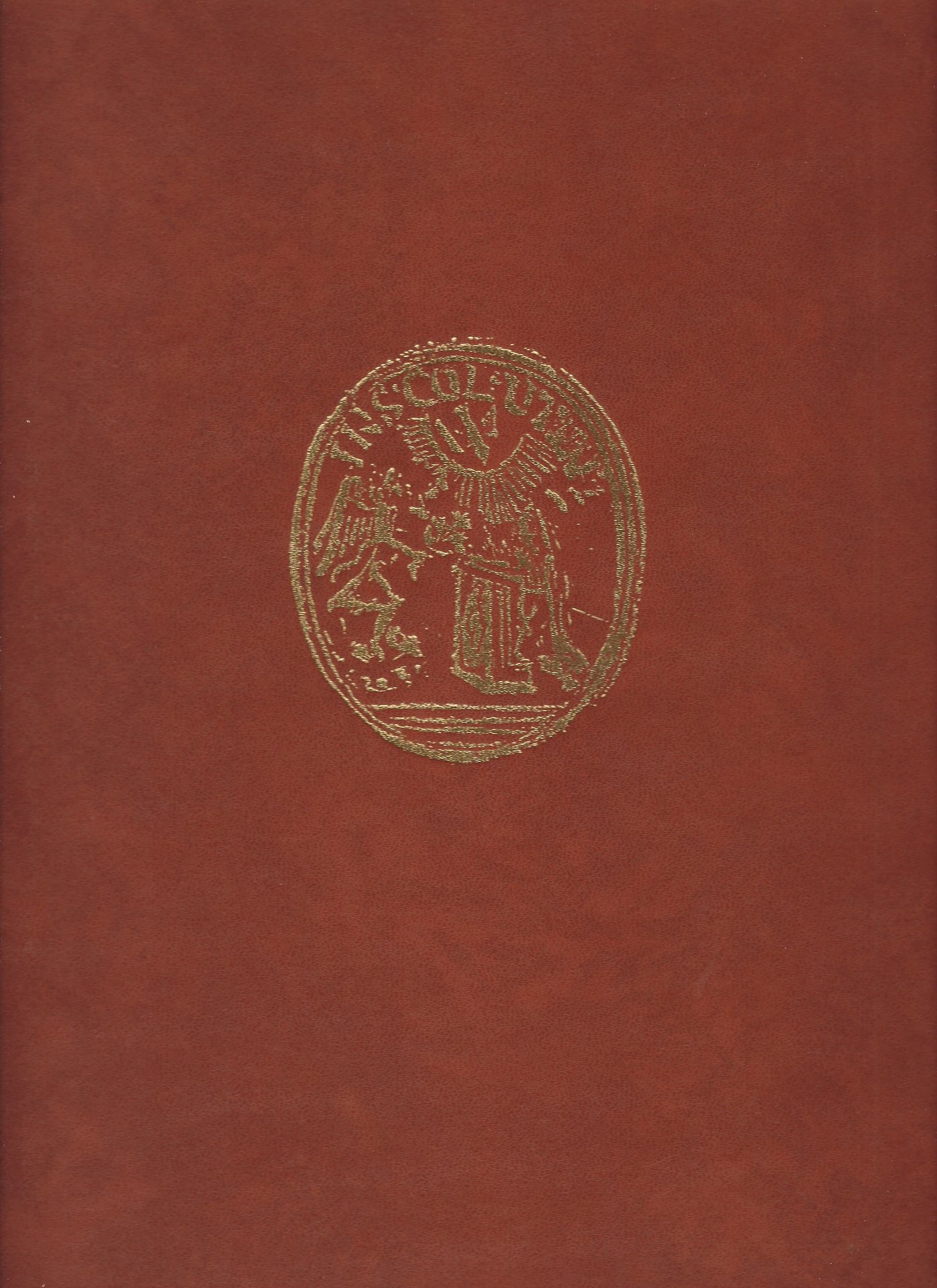 Legatura editoriale in similpelle marrone con stemma inciso in oro al piatto e con sovraccoperta illustrata a colori.