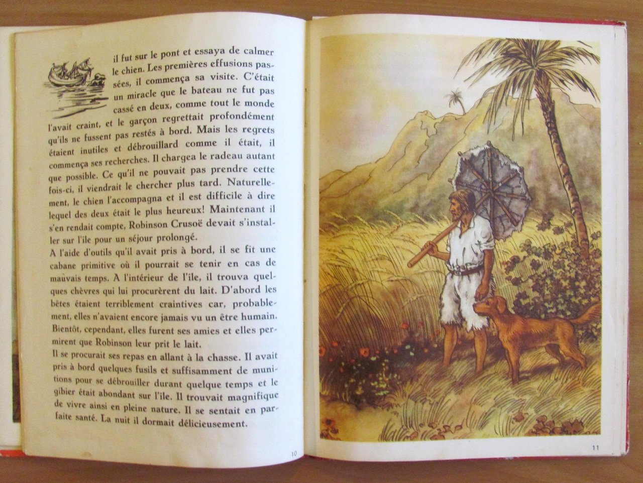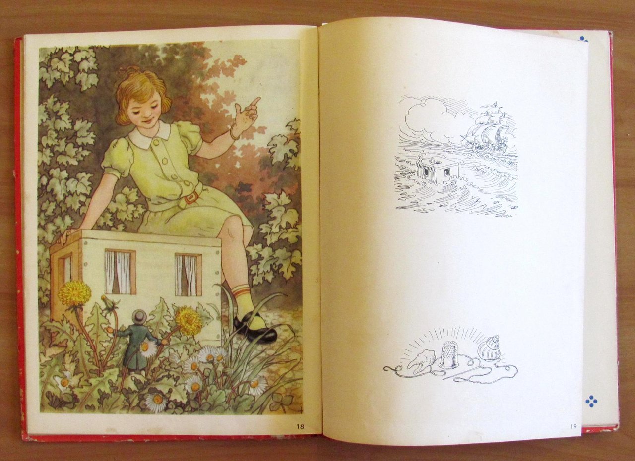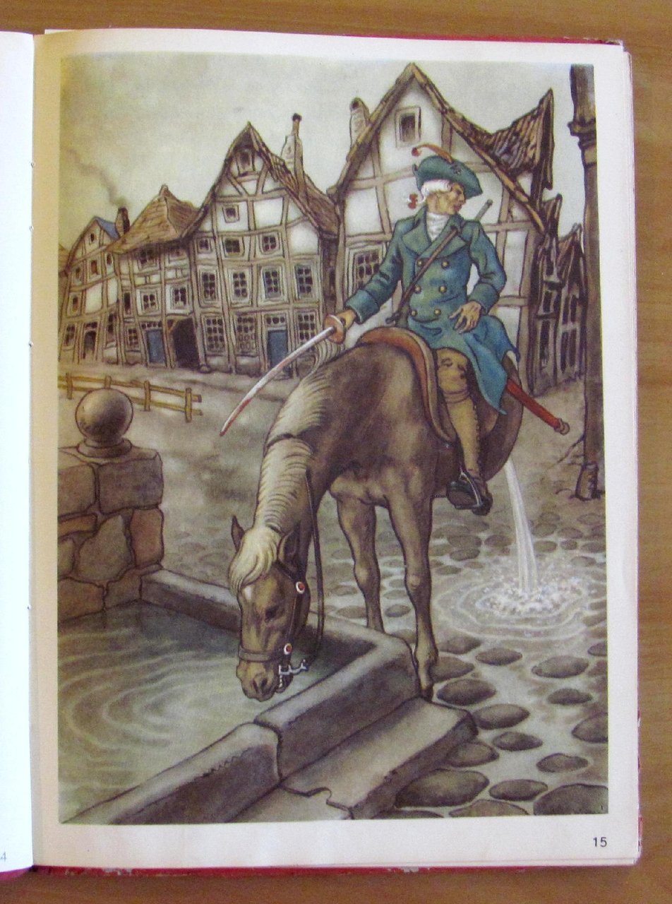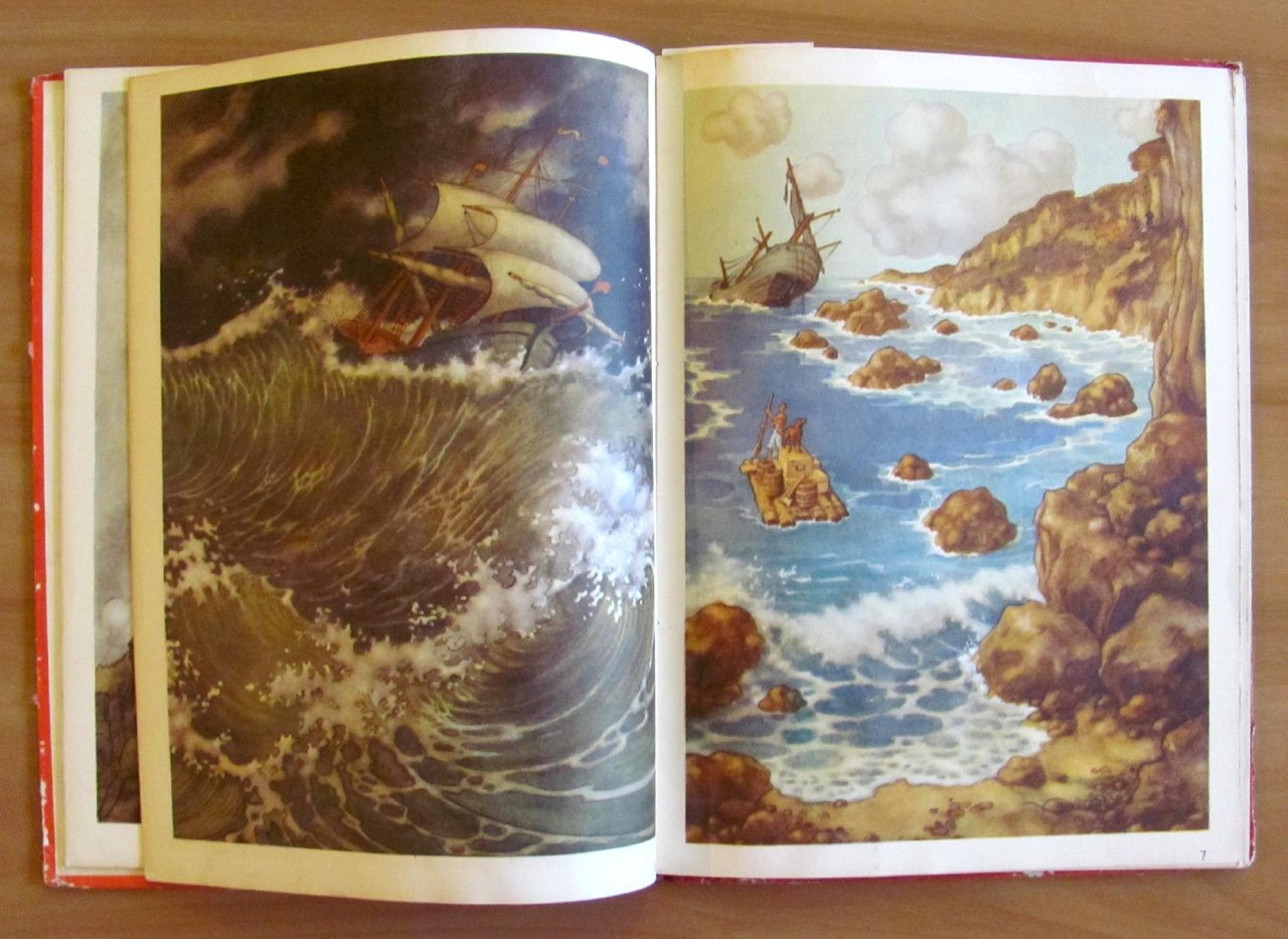 Quatre histoires: Le Baron von Munchhausen; Robinson Crusoe; Les voyages de Gulliver; Tyl Uylenspiegel. 24 splendide illustrazioni a colori a piena pagina e doppia pagina, 6 per ciascun racconto, e illustrazioni in b/n n.t. di autore Anonimo. Imprimé en Holland, s.d. anni '30/'40. Cartonato editoriale con dorso in tela originale. Spellature della carta ai margini delle copertine e alle cerniere interne delle sole copertine. Libro perfettamente legato e pulito. 23x32; pp.19 per ciascun racconto. Bellissimi libro-raccolta di 4 famosissimi personaggi d'avventura splendidamente illustrato. Raro, Buonissimo stato. , Buono (Good)