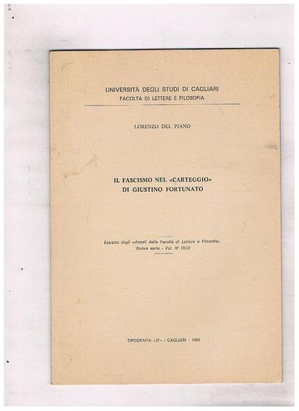 Il fascismo nel "carteggio" di Giustino Fortunato. Estratto dagli "Annali della Facoltà di Lettere e Filosofia" - Nuova Serie - vol. IV (XLI).