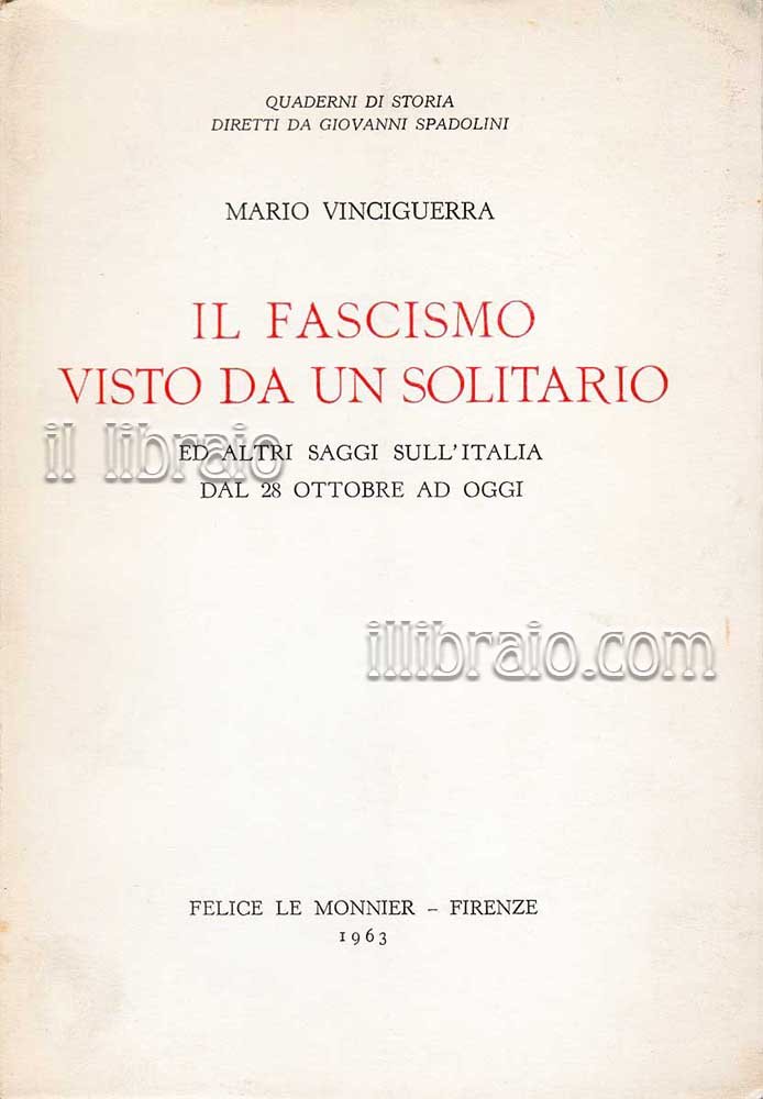 in 8°; pp. 184; br.; coll. Quaderni di storia diretti da G. Spadolini. Con altri saggi sull'Italia dal 28 ottobre ad oggi