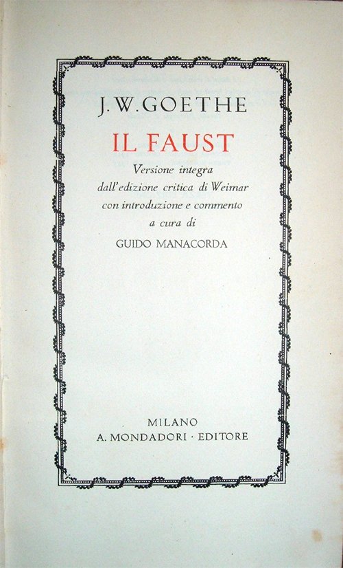 Il Faust. Versione integra dall'edizione critica di Weimar con introduzione e commento a cura di Guido Manacorda
