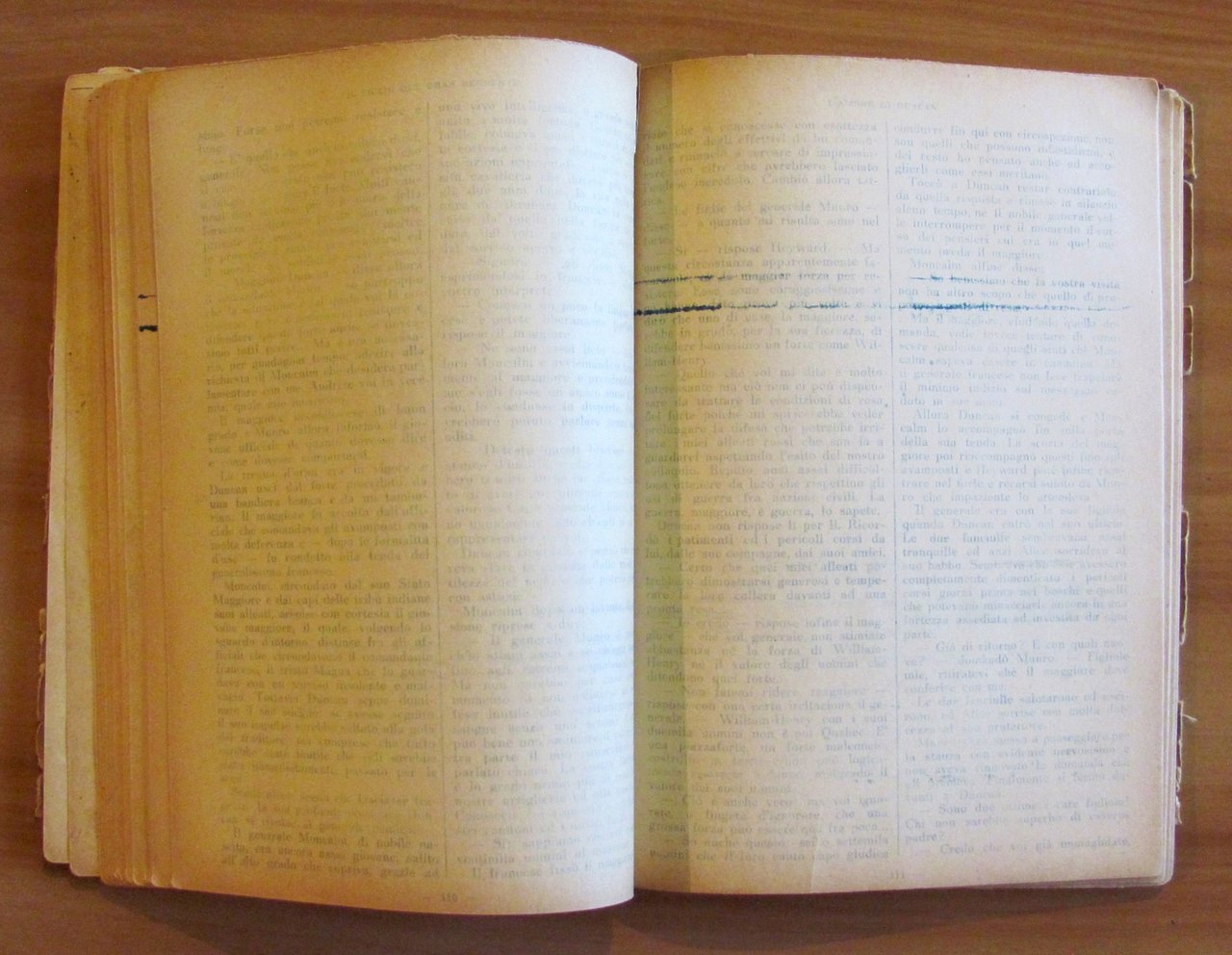 Rara brossura editoriale con barbe e imperfezioni marginali e vecchia etichetta in basso al dorso. La prima metà delle dispense è intonsa, la dispensa 14 presenta 2 pagine editorialmente molto chiare e la pagina di Indice è mancante di una porzione che non lede però il testo, tutto come visibile in foto. Peraltro pulito e freschissimo. 16,5x23,5; pp.236. Raro e in Buonissimo stato.
