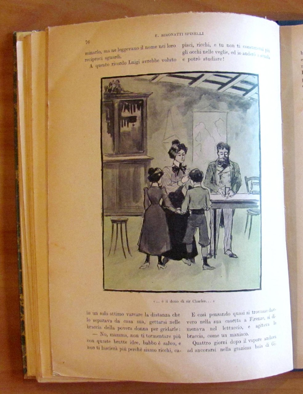 Molte illustrazioni in tricromia e a colori n.t. di Yambo. Casa Editrice G. Scotti - Roma, 1911. Rilegatura coeva cartonata con dorso in tela con copertine originali applicate ai piatti. Minime fioriture del tempo in pochissime pagine, peraltro Come Nuovo. 21x28,5; pp.78. Raro, Ottimo stato. , Molto buono (Very Good)