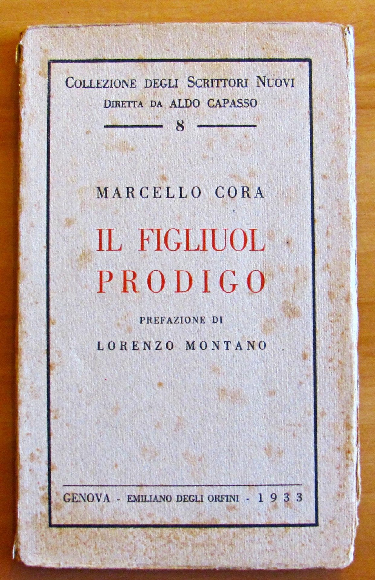 Collezione degli Scrittori Nuovi N.8 diretta da Aldo Capasso. Prefazione di Lorenzo Montano. Ed. Emiliano degli Orfini, Genova - 1933. Brossura editoriale con leggere fioriture alle copertine e al dorso. Interno freschissimo. 13x21; pp.94. BUONISSIMO STATO , Molto buono (Very Good)