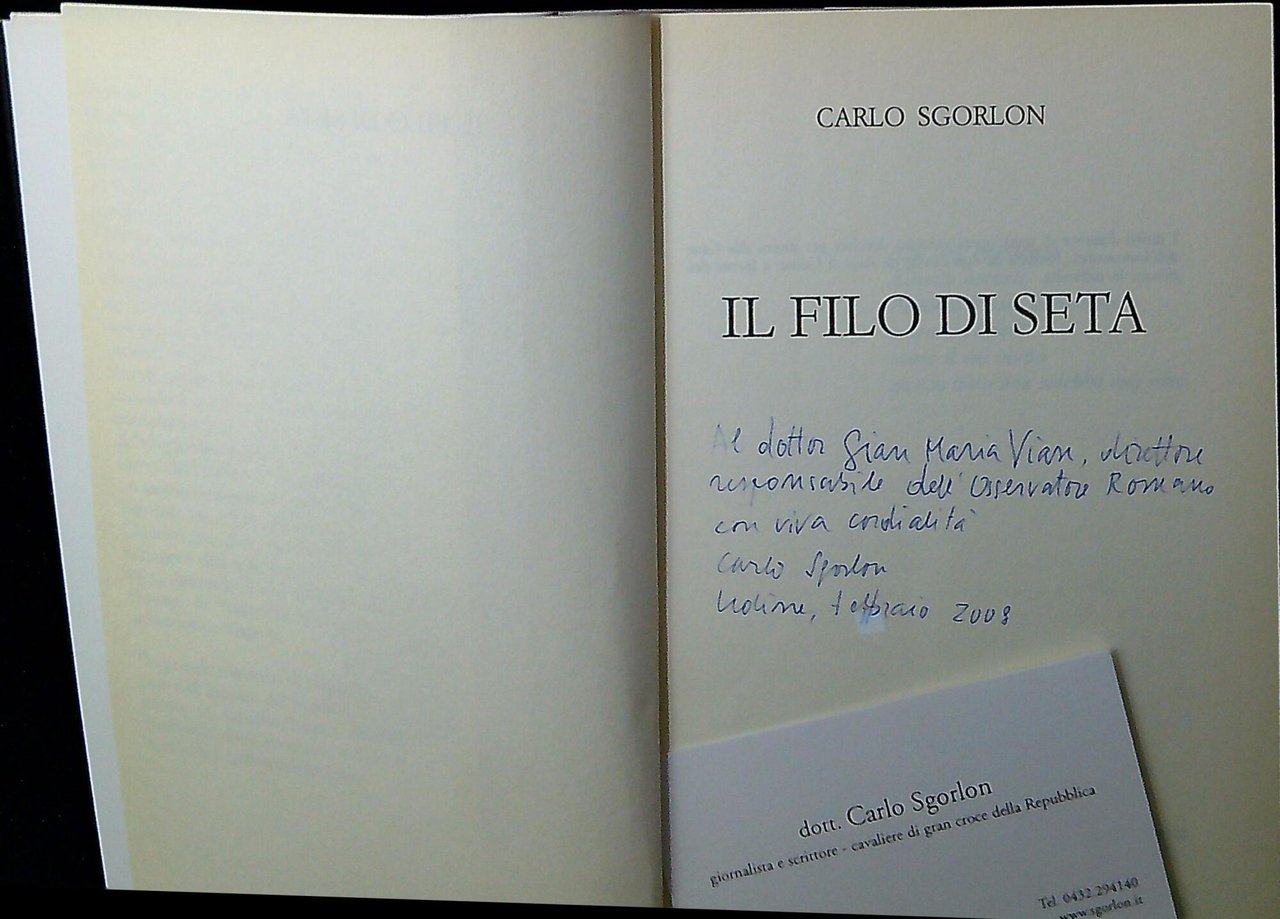 Sgorlon, Carlo Il filo di seta. , Piemme 2004, 335 Dedica autografa dell'autore (67844)