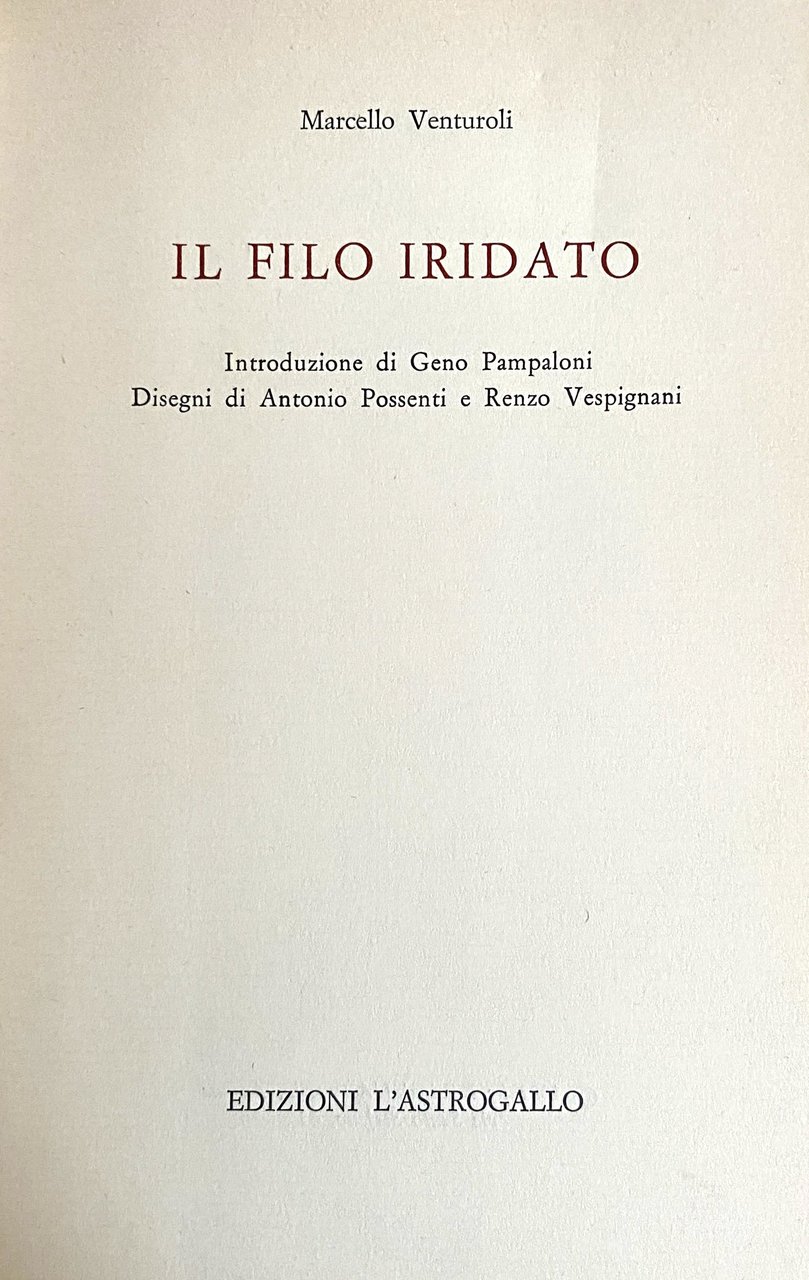 QUESTO VOLUME A CURA DELLE EDIZIONI L'ASTROGALLO È STATO STAMPATO CON CARATTERI GARAMOND E CARTA GRIFO DELLE CARTIERE MILIANI DALLO STABILIMENTO TIPOLITOGRAFICO BRAMANTE L'8 DICEMBRE 1982 IN 600 COPIE NUMERATE DA 1 A 600 E CENTO COPIE NUMERATE DA I A C CON QUATTRO ACQUEFORTI ORIGINALI FIRMATE DI CUI DUE DI ANTONIO POSSENTI E DUE DI RENZO VESPIGNANI INOLTRE SONO STATE STAMPATE VENTI COPIE RISERVATE AGLI ARTISTI COPIA N. 24.