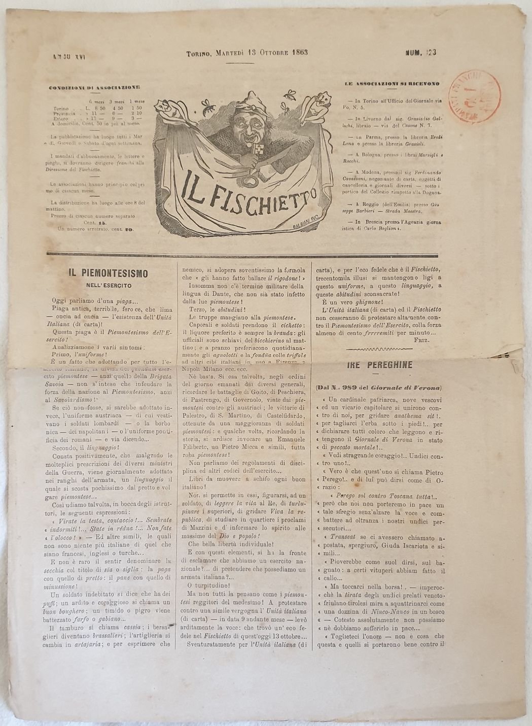IL FISCHIETTO TORINO MARTEDI 13 OTTOBRE 1863