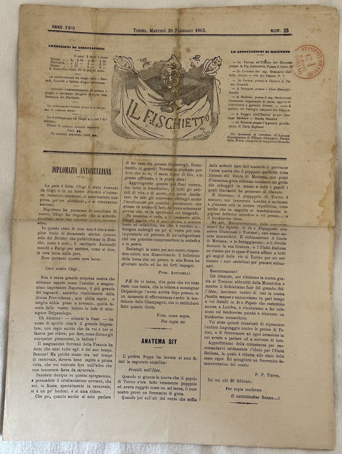 IL FISCHIETTO TORINO MARTEDI 28 FEBBRAIO 1865
