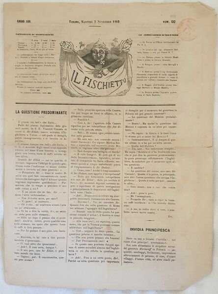 IL FISCHIETTO TORINO MARTEDI 3 NOVEMBRE 1863 TIP. LETTERARIA <BR><BR>