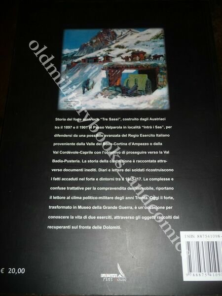 TITOLO: IL FORTE AUSTRIACO TRE SASSI IN VALPAROLA MUSEO DELLA GRANDE GUERRA SULLE DOLOMITI 1915-1917 CON STORIE DI RECUPERANTI DESCRIZIONE: Gaspari Ed. Udine 2004, br. ed. ill., pp. 144 num. ill. b/n e col. n.t. in 4°. CONDIZIONI: Ottime/Perfette. PESO / WEIGHT: 700 gr. without package