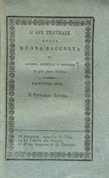 - L'APE TEATRALE OSSIA NUOVA RACCOLTA DI DRAMMI, COMMEDIE E TRAGEDIE