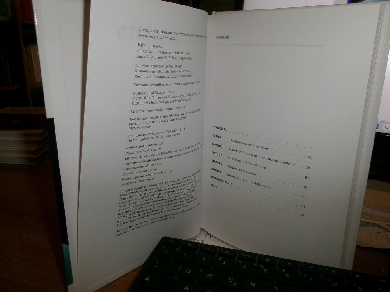Una passeggiata nel Cosmo. Milano, RBA, 2016. IL FREDDO ASSOLUTO l'assenza di movimento nell' Universo, In-8°, cartonato edit. ill. a col. 147 pp. con illustrazioni acolori n.t. In stato di nuovo. Neg. scienze mob. R
