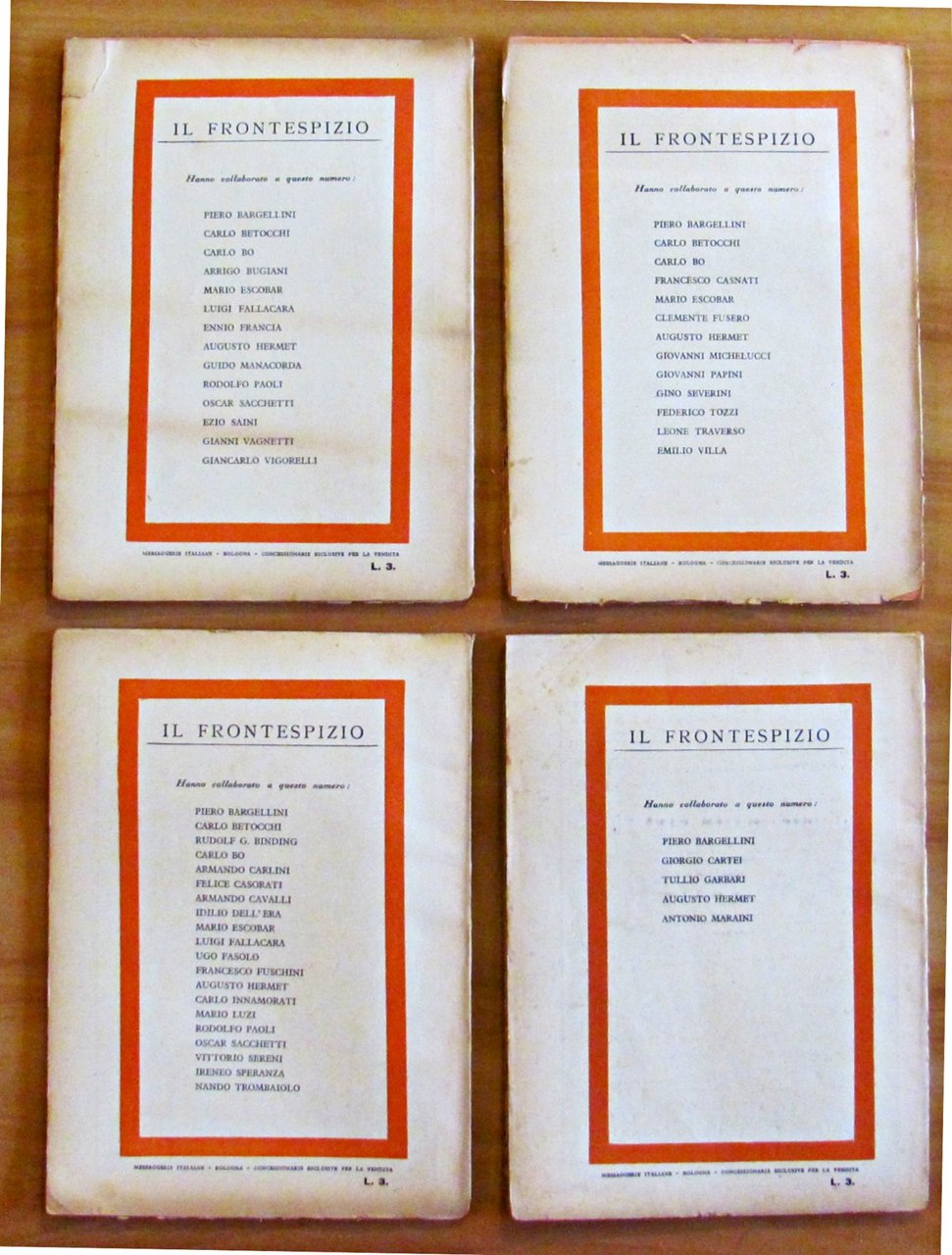 IL FRONTESPIZIO - Rivista di arte e letteratura - Lotto di 4 Volumi - Settembre/Dicembre 1938 Anno XVI N.9/12