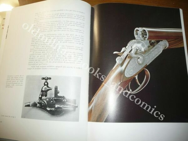 DESCRIZIONE: Olimpia Firenze 1975, br. ed. similpelle con sovracc. ill. a colori, pp. 418 con f. a col. e b/n f.t. in 4°. Prima e unica edizione, rara e ricercata. Ampio, documentatissimo trattato sul fucile da caccia a percussione centrale coi cani esterni. Con 714 bellissine illustrazioni, disegni, antiche incisioni, grandi foto in nero, e 18 tavv. f.t. a colori. E' questo il primo e unico trattato nella letteratura armiera mondiale intorno al fucile da caccia a percussione centrale coi cani esterni: storia e tecnica. Bella veste iconografica - Foto, anche a colori, disegni e spaccati. CONDIZIONI: Ottime. PESO / WEIGHT: 1900 gr. without package