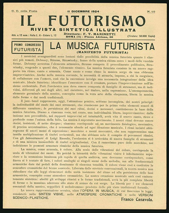 Il Futurismo: Rivista sintetica illustrata - N. 10: La Musica futurista (manifesto futurista) [Contiene anche:] Le sintesi visive della Musica (manifesto futurista); Le atmosfere cromatiche della Musica (manifesto futurista); Le versioni scenico = plastiche della Musica (manifesto futurista)