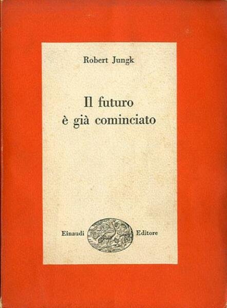 309 p., [18] p. di tav. ; 22 x 16 cm. Saggi, 391. Robert Jungk è stato uno studioso di futurologia, con particolare interesse ai rischi legati alle armi nucleari. È autore di saggi d'inchiesta, tra cui «II futuro è già cominciato» («Die Zukunft hat schon begonnen», 1952) e «Gli apprendisti stregoni» («Heller als tausend Sonnen», 1956), di successo internazionale. Traduzione di Silvana Lupo. Brossura editoriale, coperta in cartoncino flessibile colorato (b/n e arancione). Accompagnano il testo 18 pagine illustrata in b/n su carta patinata lucida fuori testo. Qualche leggero segno del tempo ai risvolti della coperta, al taglio e alle pagine interne (ingiallimento della carta) per il resto esemplare integro. Codice libreria 6162.