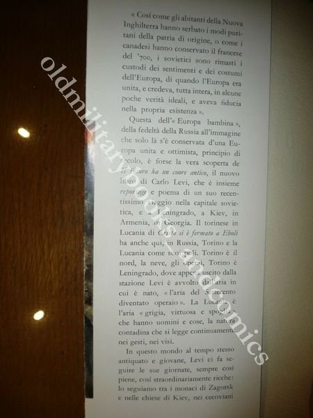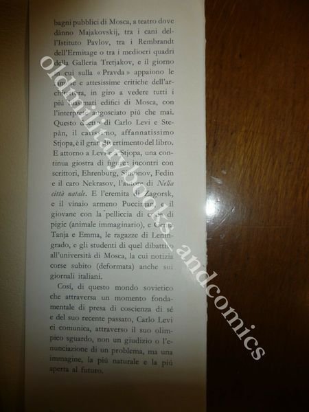 DESCRIZIONE: Einaudi Ed. Torino 1956 II^ Ed., br. ed., pp. 306 in 8°. Reportage e poema di un viaggio in Russia del celebre autore piemontese effettuato tra il 17 ottobre e il 19 novembre del 1955 nella capitale sovietica, a Leningrado, a Kiev, in Armenia e in Georgia. Vincitore del premio Viareggio 1956. CONDIZIONI: Buone. Il vecchio proprietario, un matematico, era stato Preside di Liceo, e Docente Universitario. Questo libro proviene dalla sua importante biblioteca privata, per cui alla prima bianca sono riportati i codici di catalogazione oltre all’etichetta sul dorso. PESO / WEIGHT: 500 gr. without package