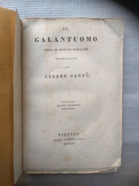 IL GALANTUOMO, LIBRO DI MORALE POPOLARE.