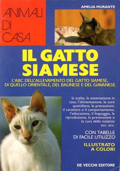 159 p. : ill. ; 21 x 15 cm. L'ABC dell'allevamento del gatto siamese, di quello orientale, del balinese e del giavanese. Brossura editoriale, coperta in cartoncino flessibile plastificato lucido, illustrata a colori . Codice libreria 5534.