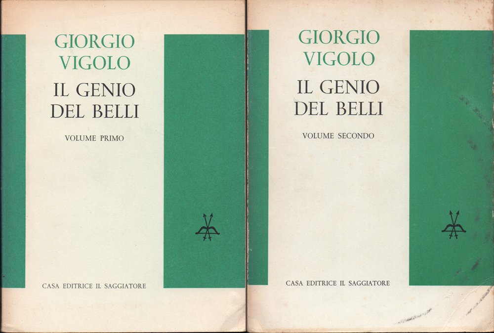 Due volumi in-8° (20,9 x 15,4 cm), pp. (6), 232, (2); 472, (8), copertina editoriale. Segni duso e del tempo alla copertina di entrambi i volumi, in particolare: alcune piccole abrasioni ai margini e qualche piccolo segno d'umido; al volume secondo, la copertina anteriore presenta due piccoli segni neri nella parte inferiore e una piegatura nell'angolo inferiore esterno; al dorso di entrambi i volumi, il colore si presenta leggermente virato, con tutta probabilità per esposizione alla luce. Segni d'umido al taglio di testa dei due tomi. Al volume primo, nel margine esterno del foglio con le pagine 195-196, piccolissimo strappo, molto lontano dal testo, ben rimarginato con carta giapponese. Al volume secondo, lievi segni d'umido alla prima pagina e alle ultime quattro. In entrambi i volumi, normale patina del tempo alle pagine. Per il resto, ben conservato. Volume LXXVII nella collana "La cultura. Storia, critica, testi". Prima edizione. Indice: Volume primo. Parte prima: esperienza belliana. Parte seconda: saggio sul Belli. I. La vita e l'iter poetico. II. Spirito europeo e sustrato romano. III. Il personaggio «popolo». IV. La lotta col dialetto. V. La clandestinità. VI. La forma-sonetto. VII. Genesi poetica e rigore formale. VIII. Schemi e strutture: l'elenco. IX. Mimi, monologhi, trascrizioni. X. La musicalità. XI. Ambivalenza del comico. XII. L'esaltazione figurativa. XIII. Il senso della morte. XIV. Diabologia romanesca. XV. La «charitas» e l'umorismo religioso. XVI. Il diagramma dei sonetti. Bibliografia degli scritti sul Belli di Giorgio Vigolo. Volume secondo. Avvertenza. Tematica dei sonetti: testi e commenti. L'arco dei sonetti. Lessico delle voci romanesche. Indice dei sonetti romaneschi e delle poesie italiane del Belli. Indice delle persone e delle cose notevoli.