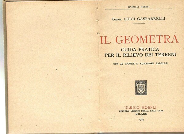 Prima edizione. Collana "Manuali Hoepli" - Volume in copertina rigida con piatto figurato, tagli colorati, xii-156 pagine. Buona-ottima copia.