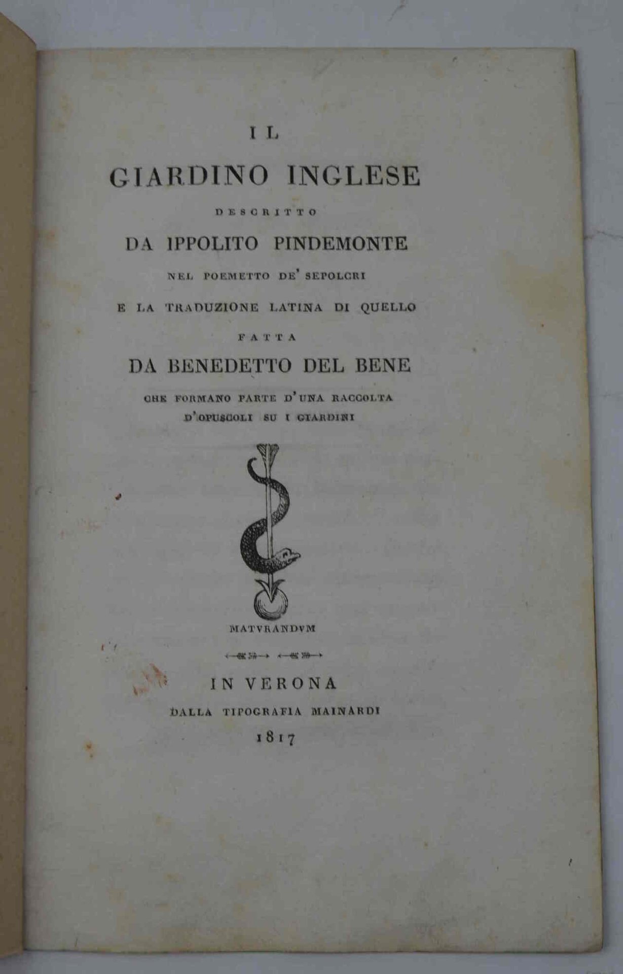 Il giardino inglese descritto da Ippolito Pindemonte nel poemetto de' Sepolcri e la raduzione latina di quello fatta da Benedetto del Bene...