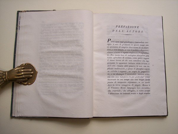 Cm. 23 x 17; pp. (2), XVII, 123 (2) con medaglione con ritratto dell'autore all'antiporta; bella legatura d'epoca in mezza pelle con fregi oro al piatto, fregi oro e tassello al dorso.<BR>CONDIZIONI MOLTO BUONE: bella carta bianca e forte; alcune piccole abrasioni ai piatti e angoli un po' ammaccati.