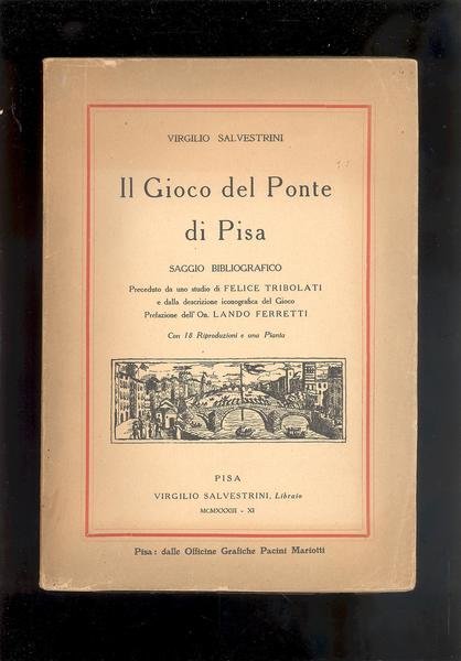IN 8°, pp. LXIII ( 4 ), 201, INDICE. COPERTINA EDITORIALE ILLUSTRATA in b/n. CON TITOLO ENTRO CORNICE ROSSA. OPERA ARRICCHITA DA 18 RIPRODUZIONI E UNA PIANTA. SAGGIO BIBLIOGRAFICO PRECEDUTO DA UNO STUDIO DI FELICE TRIBOLATI E DALLA DESCRIZIONE ICONOGRAFICA DEL GIOCO. PREFAZIONE DELL'ON. LANDO FERRETTI. VIRGILIO SALVESTRINI,<BR>LIBRAIO PISANO AUTORE DELLA FONDAMENTALE BIBLIOGRAFIA SU GIORDANO BRUNO. OTTIMA CONSERVAZIONE - RARO. DEDICA AUTOGRAFA DELL'AUTORE ALLA PRIMA CARTA.<BR>ID, 5826<BR>