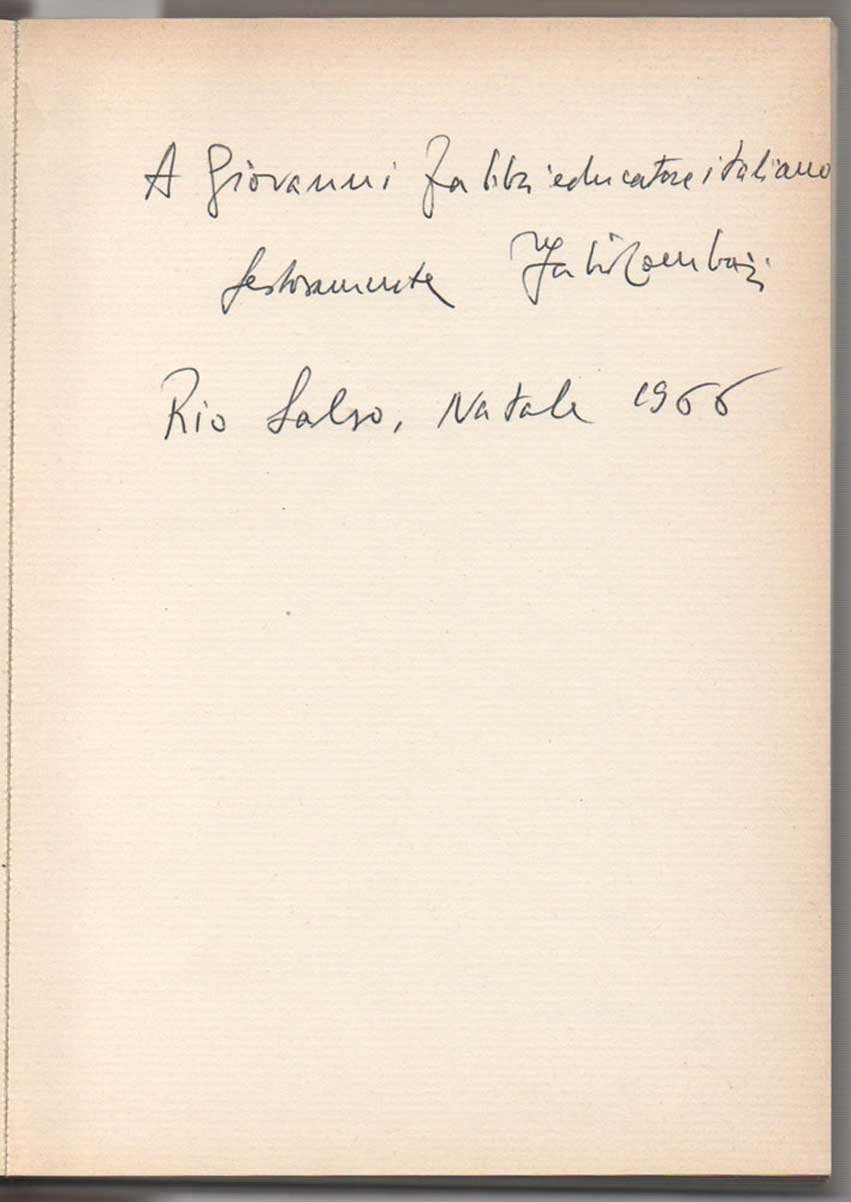 LIBRO Prima edizione. CON AUTOGRAFO. Ottimo esemplare. Dedica autografa dell'autore ad una carta bianca: «A Giovanni Fabbri educatore italiano festosamente… Rio Salso, Natale 1966».” Romanzo per ragazzi. Illustrazioni nel testo di Guido Bertello. Gambetti/Vezzosi p. 477