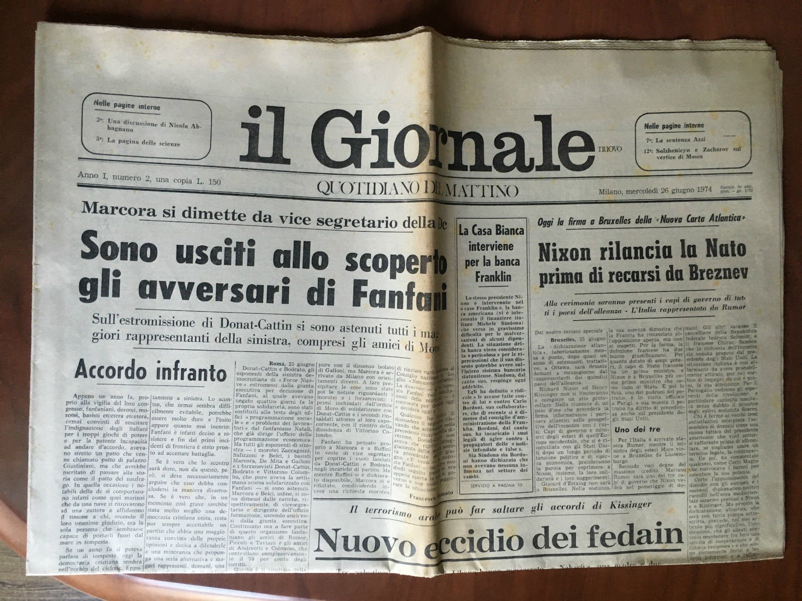 IL GIORNALEANNO I N^ 2 Milano, Mercoledì 26 Giugno 1974In buono stato (135 g)E20539