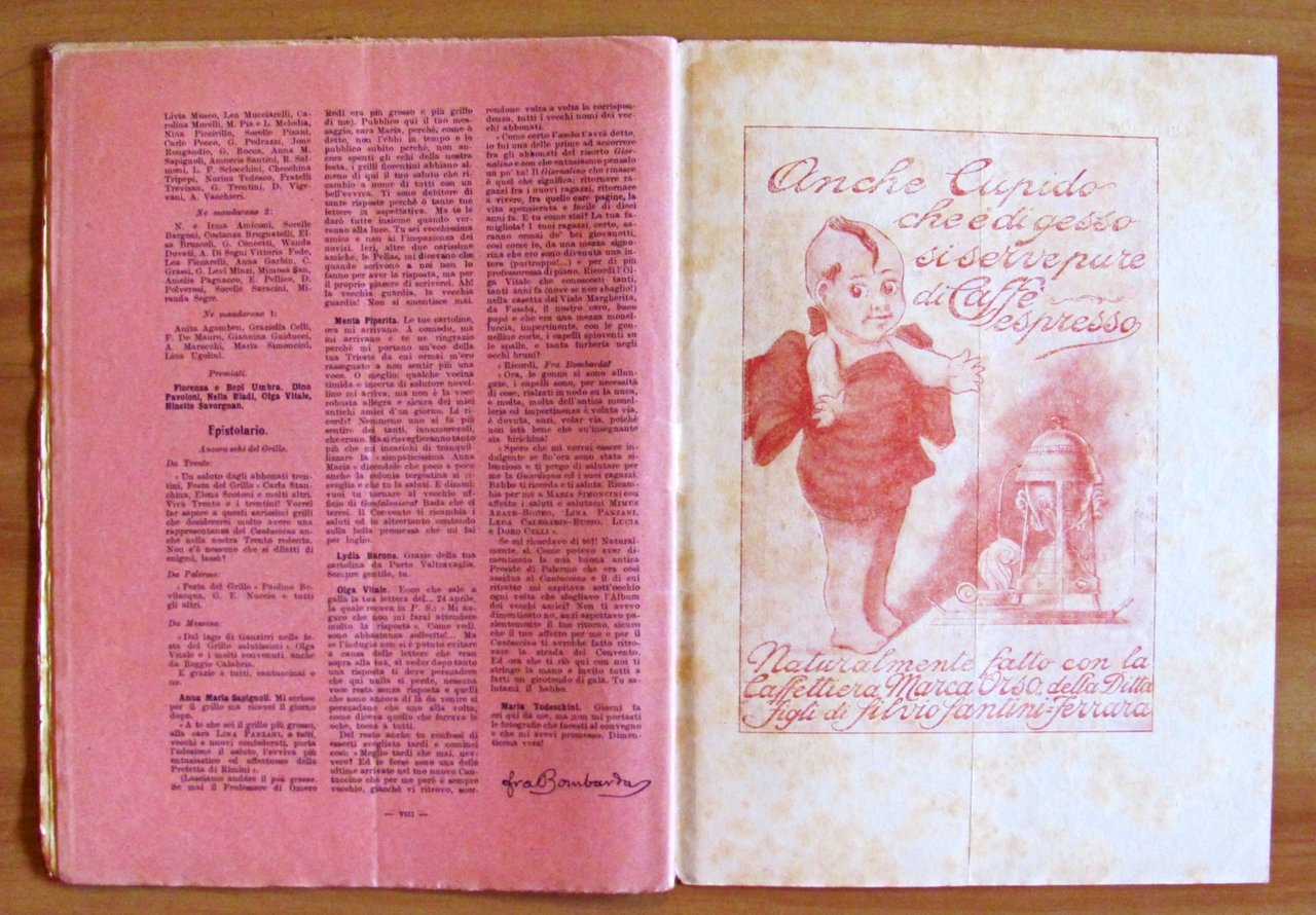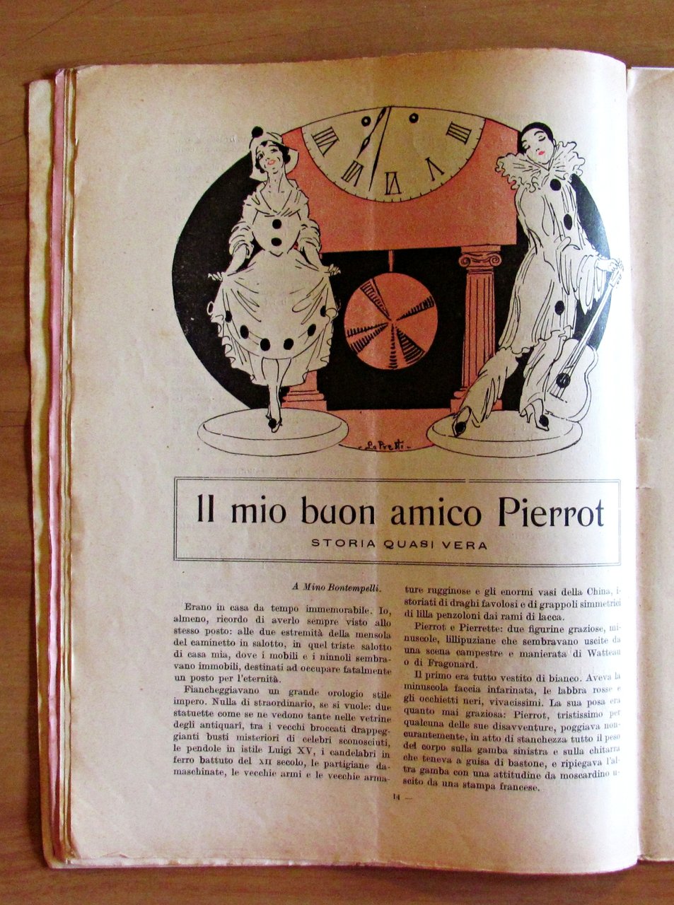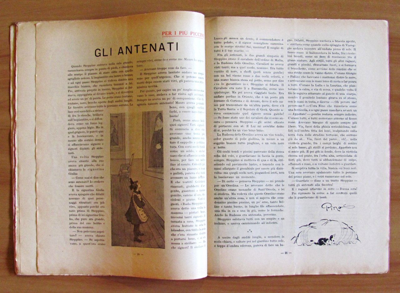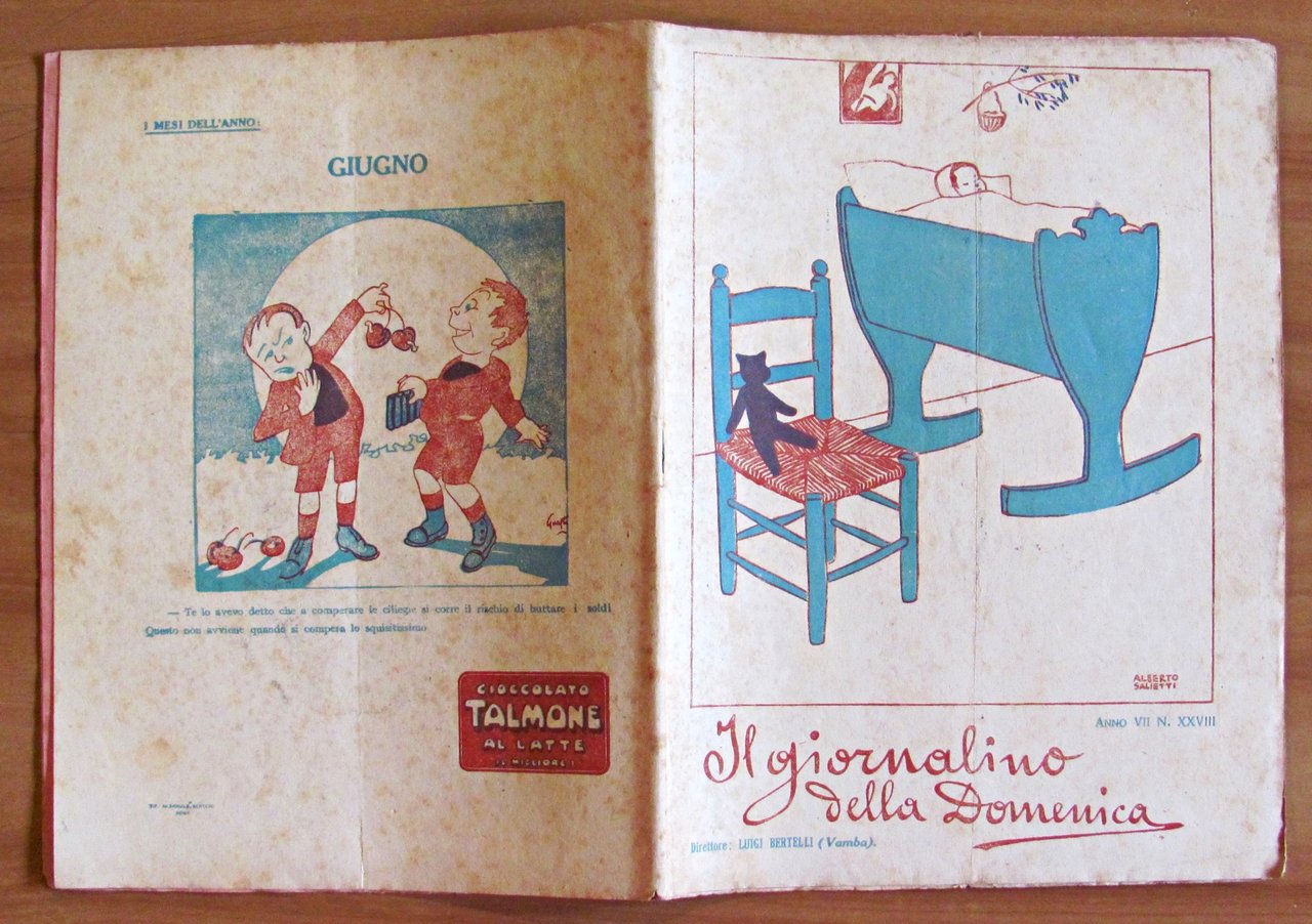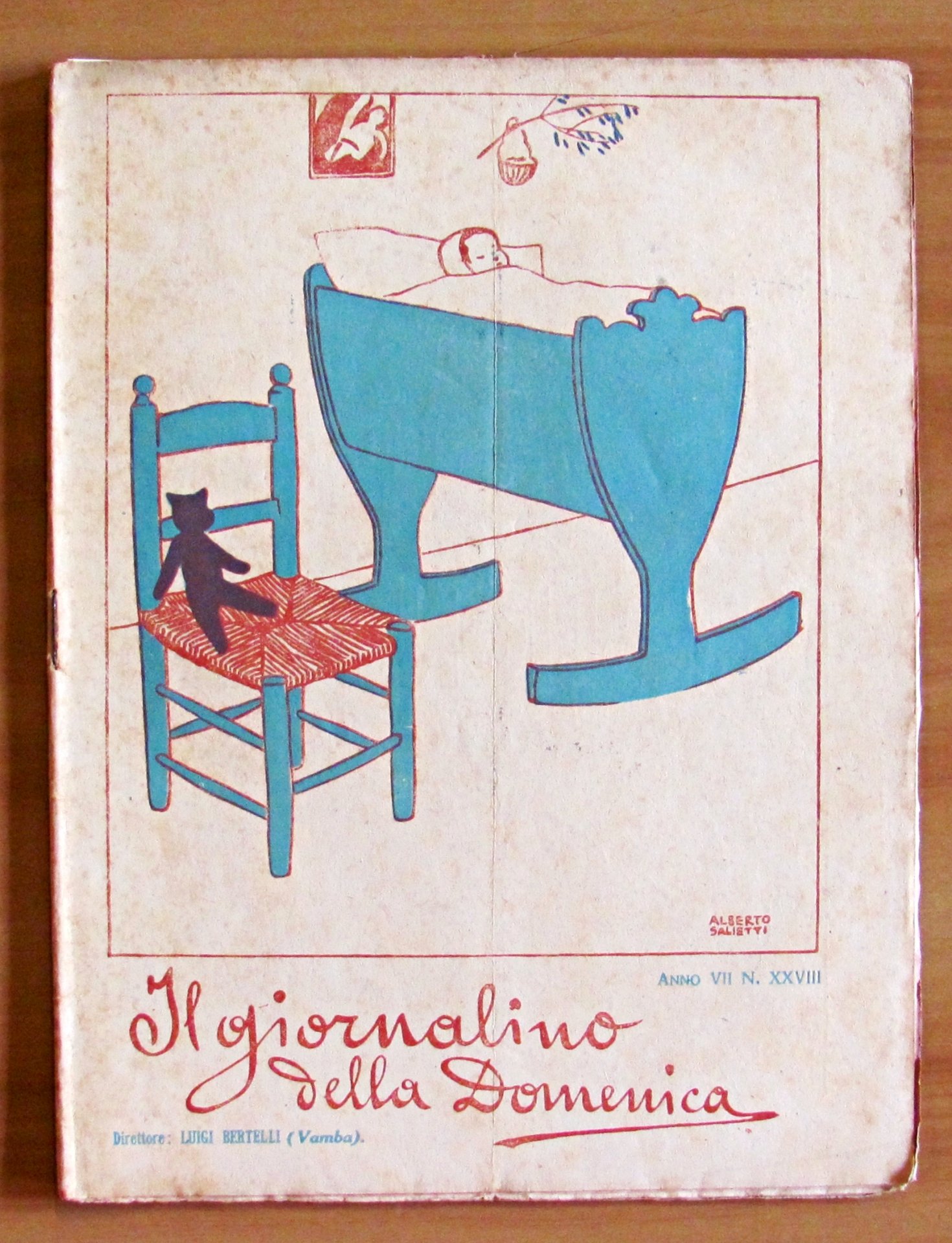 Rivista settimanale. Anno VII - N.XXVIII. Roma, 29 Giugno 1919. Illustrazioni in b/n e a colori n.t. Copertina di Alberto Salietti. Capuana, Pierrot, Fiume Italiana... Direttore Luigi Bertelli (Vamba) - Roma, 1919. Brossura editoriale con qualche brunitura del tempo. Piccolo strappo alla spilletta di pag.18.  21,5x28,5; pp. 32 + VIII di pagine rosa. RARO e in BUONISSIMO STATO , Molto buono (Very Good)