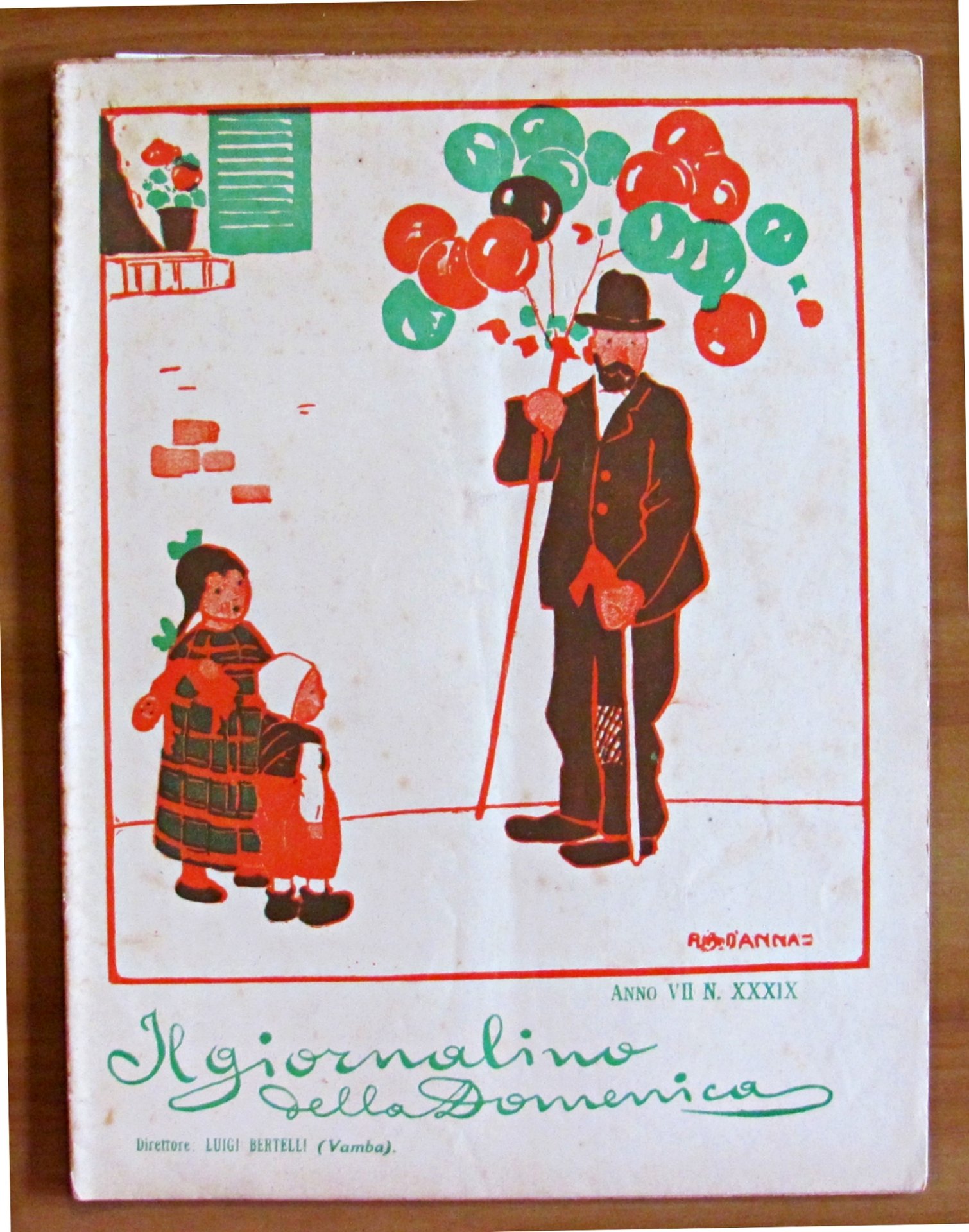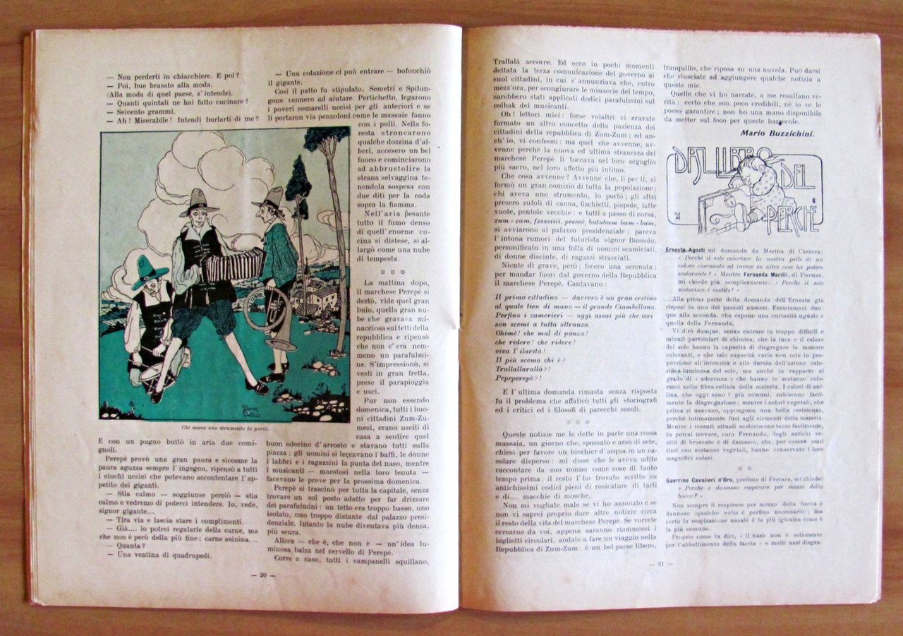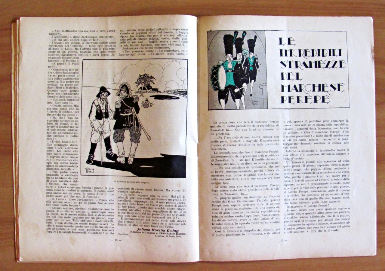 Rivista settimanale. Anno VII - N.XXXIX. Firenze, 14 Settembre 1919. Illustrazioni, di cui alcune fotografiche, in b/n e a colori n.t. Direttore Luigi Bertelli (Vamba) - Firenze, 1919. Brossura editoriale con piccola mancanza e taglietti alla retrocopertina e imperfezioni al margine basso del dorso. Lievi fioriture del tempo alle copertine. 21,5x28,5; pp.24 + XVI. BUONISSIMO STATO , Molto buono (Very Good)