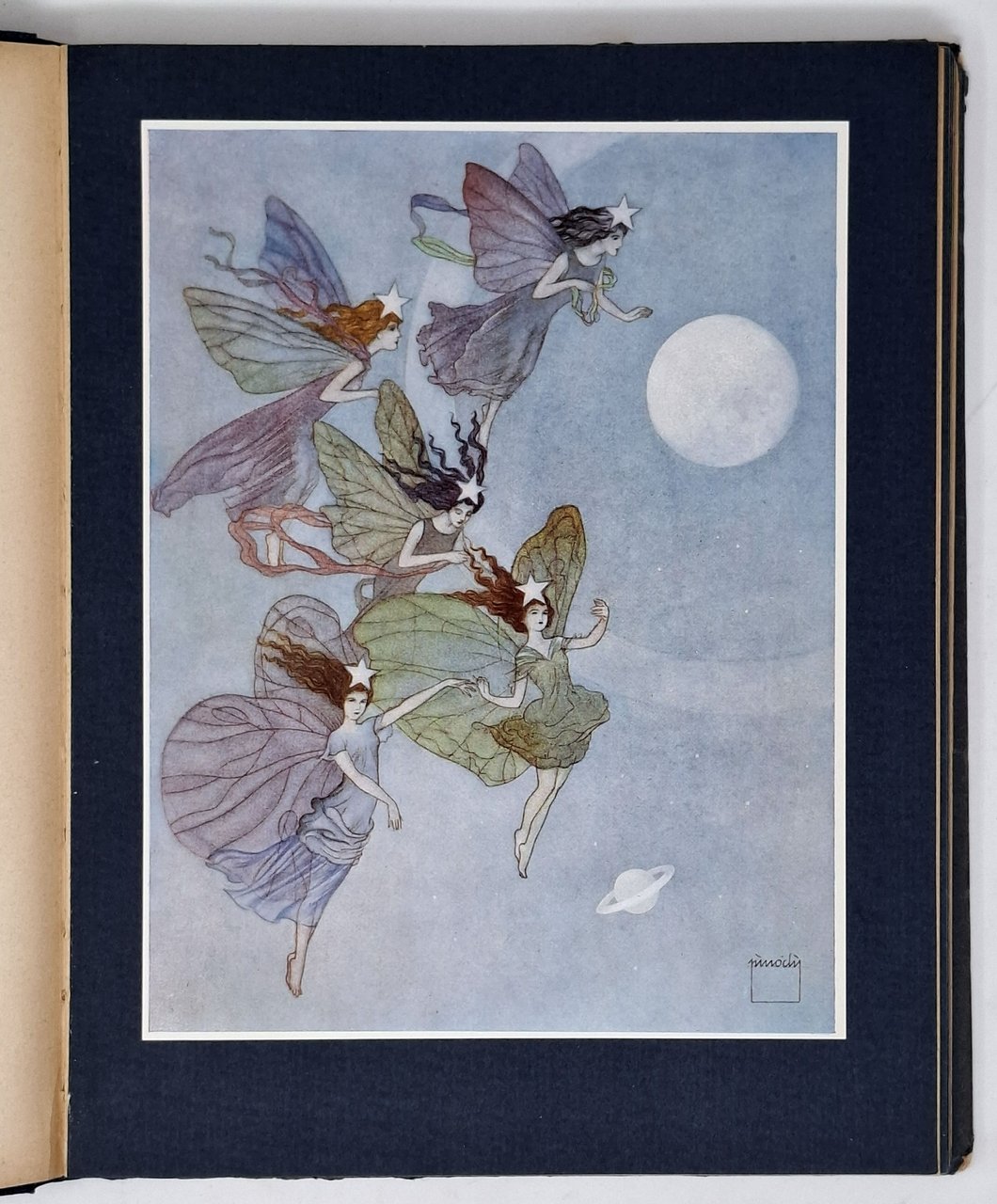 Prima edizione. Pagine: 134. Con 20 affascinanti tavole illustrate a colori(dal pittore Pinochi) e applicate su un foglio di cartoncino blu fuori testo. Formato: 20,5 x 27,5 cm circa. Stato di conservazione: rilegatura delicata (le pagine sono comunque tutte perfettamente ancorate alla rilegatura), piccole abrasioni sugli angoli dei piatti ma, nel complesso, un buon esemplare. Copertina cartonata rigida di colore blu con illustrazione a colori applicata al piatto anteriore. Dorso in tela. Sguardie decorate con il logo della casa editrice. Pinochi (1900 - 1965) fu un prolifero illustratore del tempo, soprattutto nel campo della letteratura per l'infanzia.