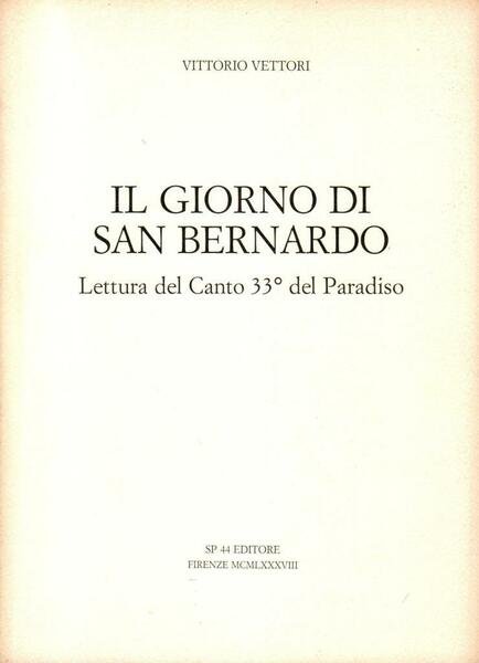 "Il giorno di San Bernardo. Lettura del Canto 33 del Paradiso", edizione luglio 1988, pp. 42, formato 17 x 23,5.