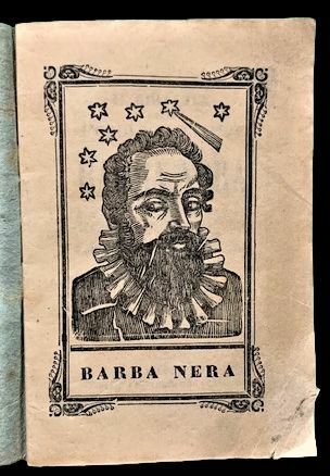 In 12°; 64 pp. Brossura coeva muta azzurra. Immagine del Barba Nera alla prima carta. Frontespizio entro cornice xilografica. Rarissima strenna con lunario e vaticini sull'anno entrante, 1863. Un piccolo rinforzo al recto dell'angolo basso della prima carta. Nessun esemplare censito in ICCU per quest'annata.