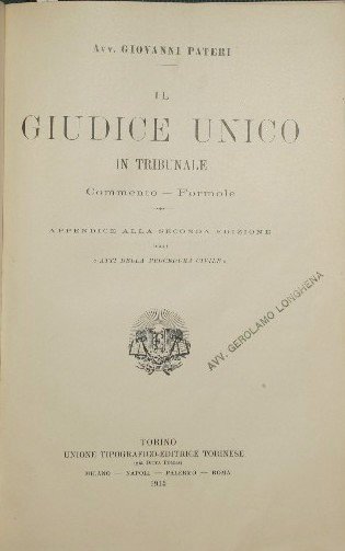 Commento - Formole - Appendice alla seconda edizione degli 'Atti della procedura civile' - in 8° - pp.VIII + 254 - Mezza tela dorso con titolo in oro
