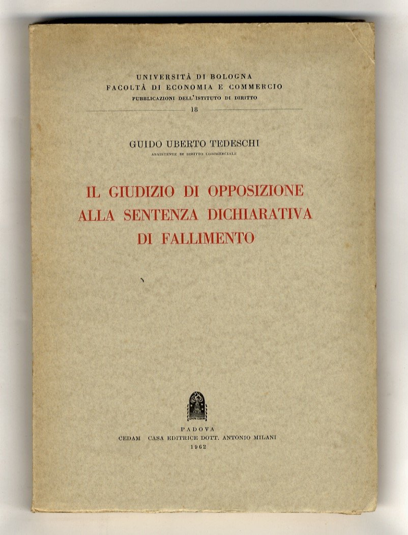 Padova, CEDAM, 1962, in-8, brossura editoriale, pp. XII, 257, [3]. Ottimo esemplare, intonso.