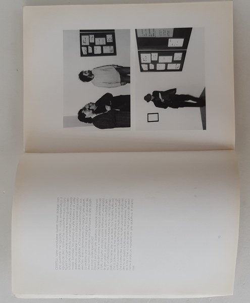 (mm.343x247), pagg.16-pagg.nn.112. Legatura in brossura lucida editoriale. Cento fogli riprodotti relativi ad una performance del Chiari tenutasi a Bologna nel 1985. Libro stampato in 1000 esemplari di cui 100 con un lavoro originale di Giuseppe Chiari (questa tiratura non fa parte delle suddette 100). Finito di stampare nel mese di ottobre 1991. Buon esemplare, minimi segni del tempo alla copertina.