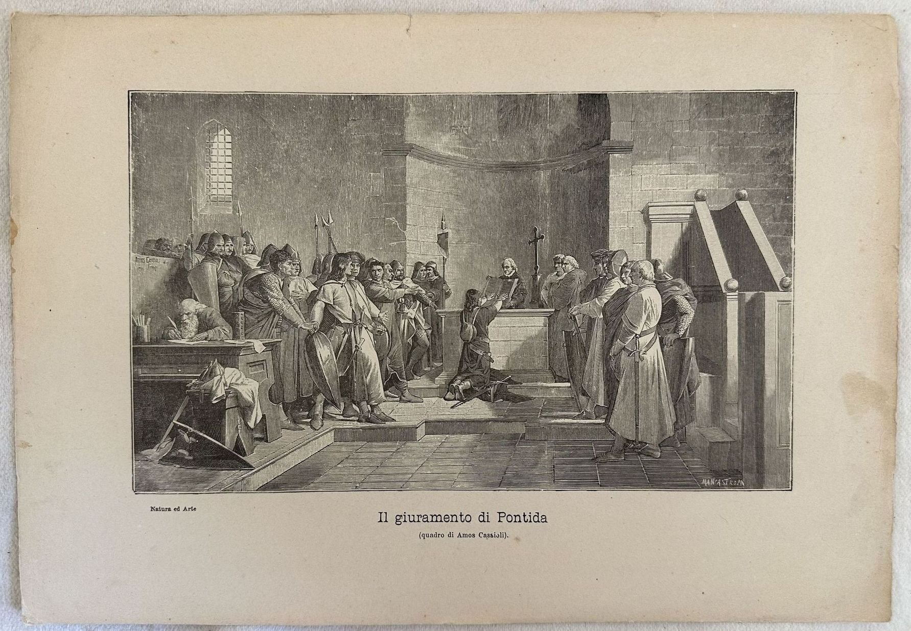 Incisione di fine ottocento che mostra il Giuramento di Pontida inciso da Ernesto Mancastroppa (Milano 1857-Milano 1909) In ottime condizioni. INCISIONE: incisione su acciaio AUTORE: Ernesto Mancastroppa (Milano 1857-Milano 1909) DIMENSIONI FOGLIO: cm 29x20 DIMENSIONI INCISIONE: cm 22x13,5 EPOCA: fine XIX secolo CONDIZIONI: buone condizioni. Lievi usure marginali. Piccoli strappi marginaliIEngraving of late 19th century showing the jury of Pontida engraved by Ernesto Mancastroppa (Milano 1857-Milano 1909) ENGRAVING: Steel engraving AUTHOR: Ernesto Mancastroppa (Milano 1857-Milano 1909) SIZE OF PAGE: cm 29x20 SIZE OF THE ENGRAVING: cm 22x13,5 PERIOD: late 19th century CONDITIONS: good conditions. Light wearings in the edges. Little tears in the edges<BR><BR>
