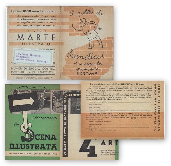 Il gobbo di Scandicci vi insegna la strada della fortuna. Depliant abbonamento alla rivista la Scena Illustrata 1941.