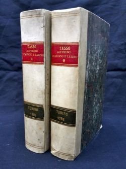 2 volumi in-8° (cm. 19), legatura di poco successiva in m. pergamena  con titolo in oro su tasselli ai dorsi (lievissimi segni d'usura); pp. 499 [5], 509 [1] [2 bb.] in buono stato e in barbe, belle vignette ai frontespizi, testo in latino a fronte curato da Baldassarre Frambaglia con proprio frontespizio. Edizione bilingue assai singolare per la presenza dell'elegante traduzione latina del Frambaglia (letterato di Castelnuovo Scrivia). Esemplare molto buono. (NH4)