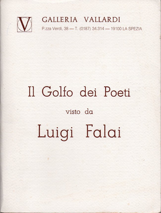 In-8° (22,1 x 16,7 cm), cartella editoriale contenente cinque schede sciolte ciascuna raffigurante un'opera di Falai riprodotta a colori. Normali segni d'uso alla cartella (vedi foto). La cartella ospita, all'interno, scritti di Renato Righetti e Sandro Rubboli, una lettera di Pietro Annigoni indirizzata a Falai e, nella sua parte posteriore, una biografia dell'artista. La pubblicazione costituiva l'invito della Galleria Vallardi di La Spezia all'inaugurazione della mostra di Luigi Falai, prevista per sabato 16 febbraio 1980 alle ore 18. Le schede raffigurano i dipinti: Isola Palmaria - Pozzale, olio; Portovenere, olio; Isola Palmaria - Pozzale, olio [sic]; Natura morta, olio; Autoritratto, tempera grassa.